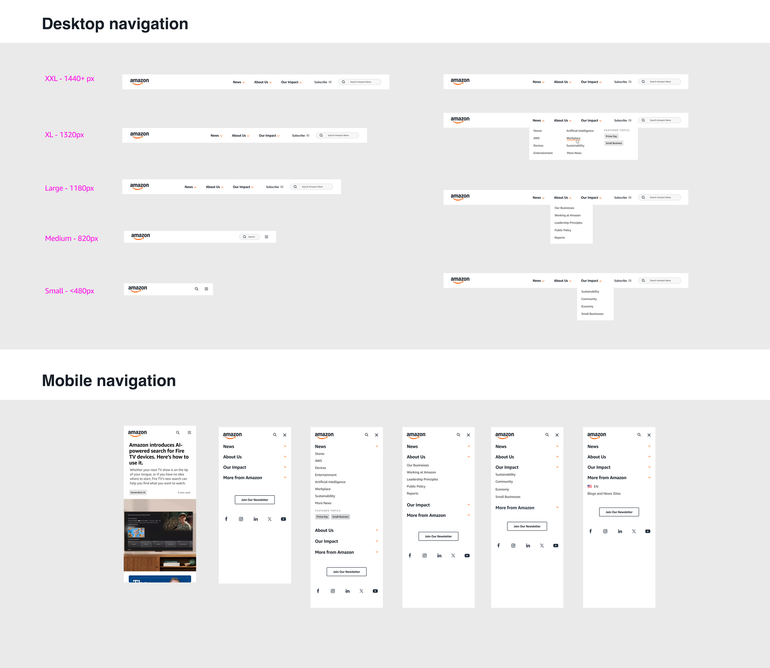 The problem: The previous Amazon News site had outdated branding, with UX dead-ends across the site. Modules within the CMS weren’t mobile-optimized, and the site’s navigation needed an overhaul.