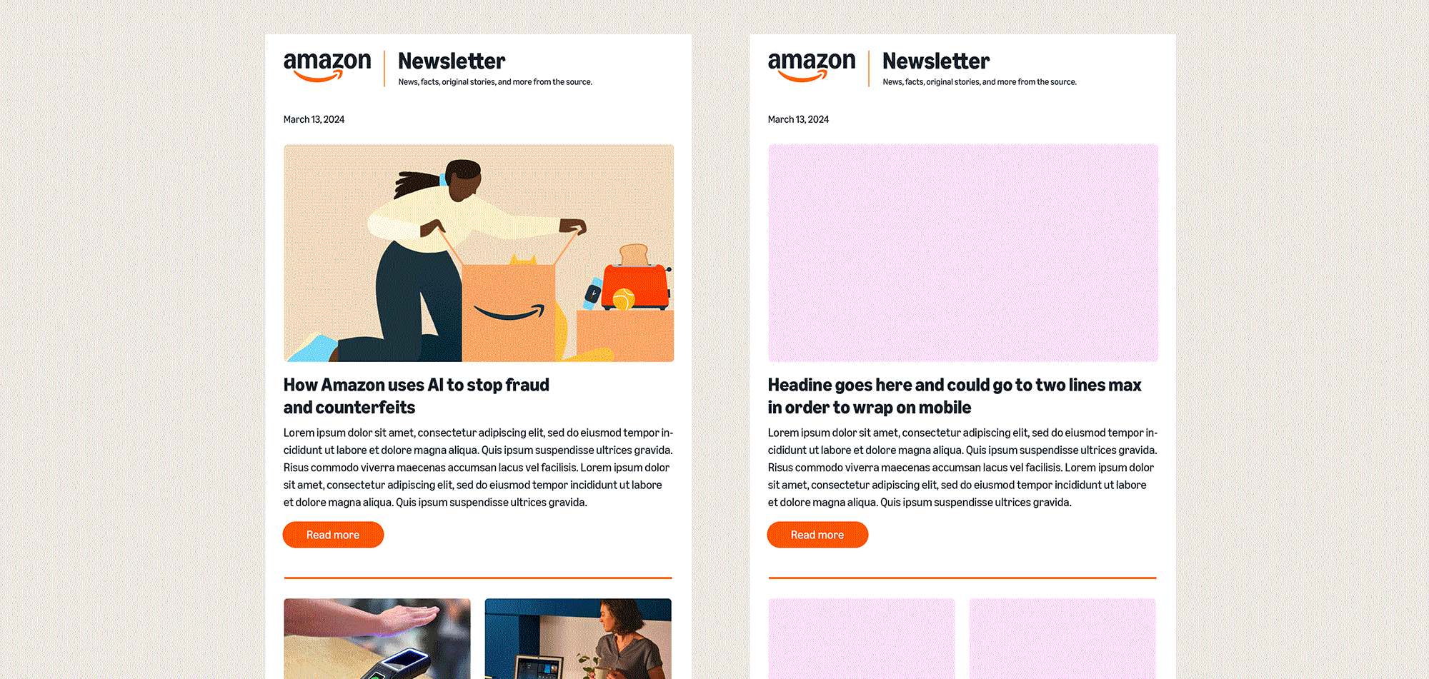 The weekly Amazon News e-newsletter showcases the latest news across Amazon to ~1 million subscribers. I art directed an external agency in the newsletter redesign, ensuring the new brand standards were met.